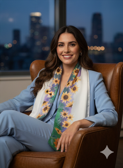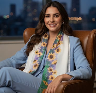 Each silk piece is meticulously hand-painted by artist Gamze Haberal in her ateliers in Istanbul and Bodrum, blending artistic tradition with contemporary design.