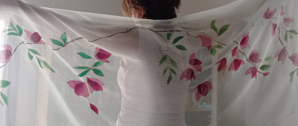 Bodrum Bougainvillea GH 8 One of a kind — hand-painted silk shawl Shop now → oneofsilk.com/bodrum-bougainvillea