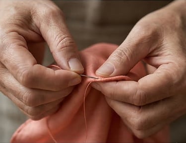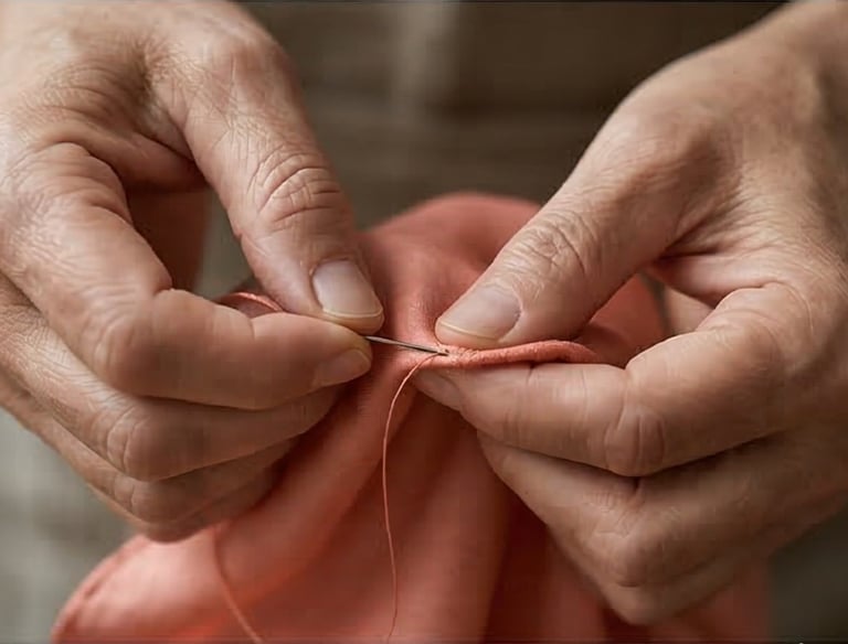 The mark of true craftsmanship lies in the edges. Each piece is finished with a traditional hand-rolled hem, painstakingly stitched to provide a soft, luxurious, and durable frame.